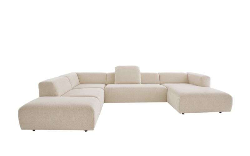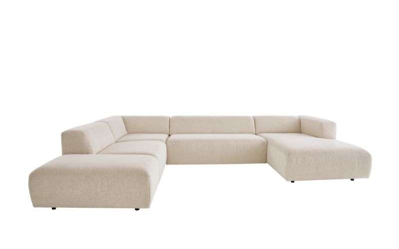 Contur Caruso Wohnlandschaft, in modischem Strukturbezug, Farbton Ecru. Kombination 5-Tlg. U-Form in modularer Bauweise. Wähle aus vielen Elementen dein individuelles Sofa. Ob ein Einzelsofa, eine Longchair-Lösung, oder eine großzügige Wohnlandschaft, es ist für jede Raumsituation was dabei. Die passenden Funktions- und Dekokissen wählst du individuell, wie du es gerne haben möchtest. Diese sind im Preis nicht enthalten und werden individuell berechnet. Maße U-Form BHT ca. 246/64/355 cm.