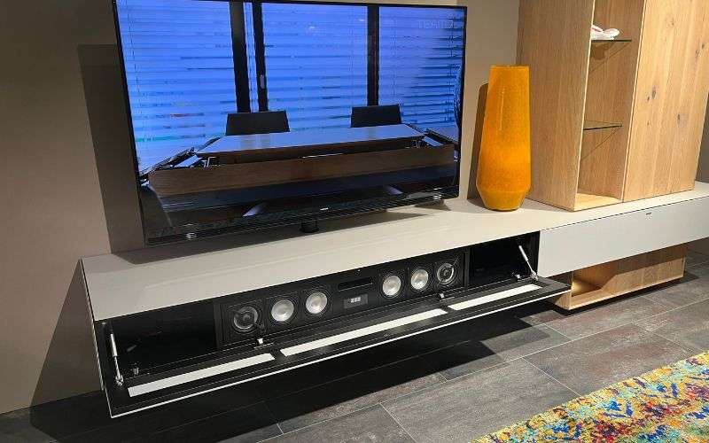 Ausführung in Eiche weiss geölt. Lowboard incl. Spectral Soundsystem BRA3.